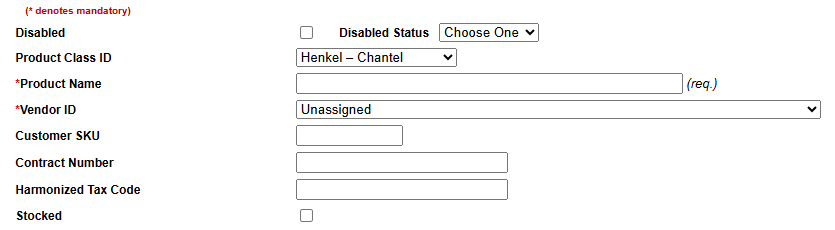 - Stocked: if this is an inventoried item, check the box