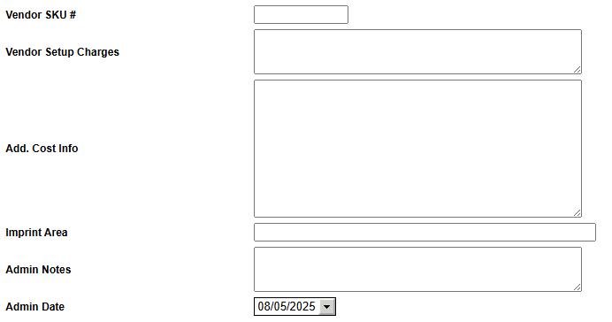 - Add. Cost Info: if the item is going to be decorated in house, use this field to detail how it is decorated such as the logo, decoration method, and transfer sizing. This should also include any special pricing that may need to be noted for future orders.