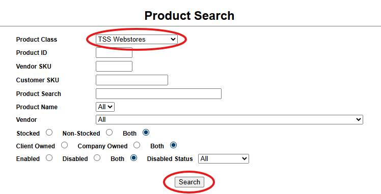 Now that all of your items have been created, go into the Product Search and select your product class.