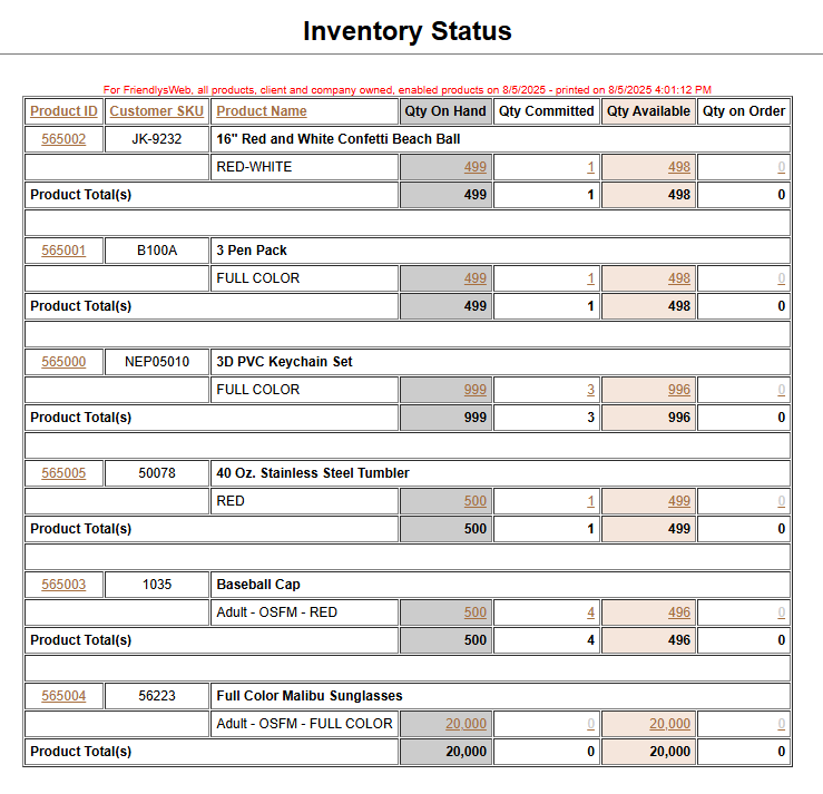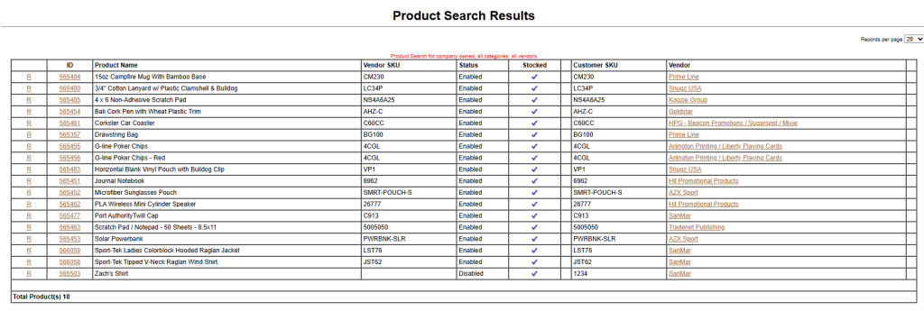 This will give you a list of all of the items that are in your product class. Click on the ID to take a look at each item.