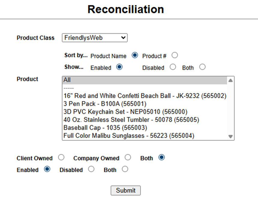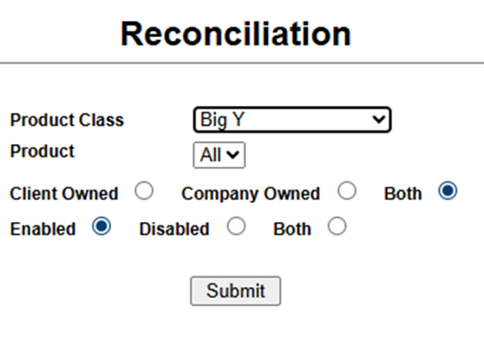 In Syncore, go to V1>Products (top menu) >Reconciliation (side bar menu).