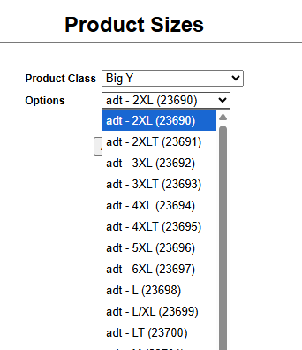 Follow this process to add every size that will come through for any product in this program. Each size will be given a unique ID number that will be used for referencing when you create your products.